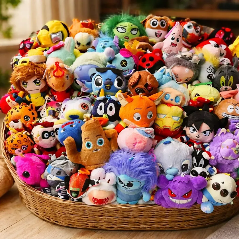 Bolsa con 25 peluches surtidos para máquina de garra, ideales para surtir tu equipo con diseños variados, llamativos y atractivos para el cliente.