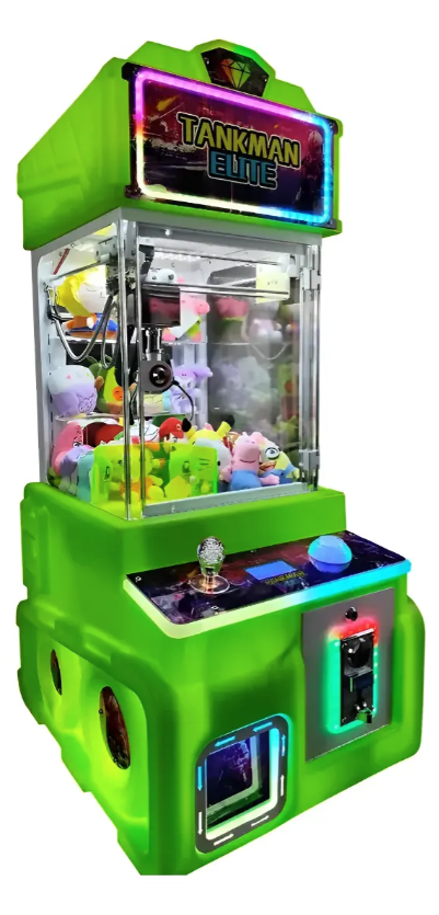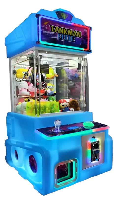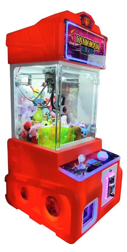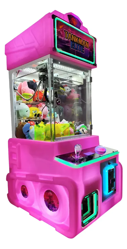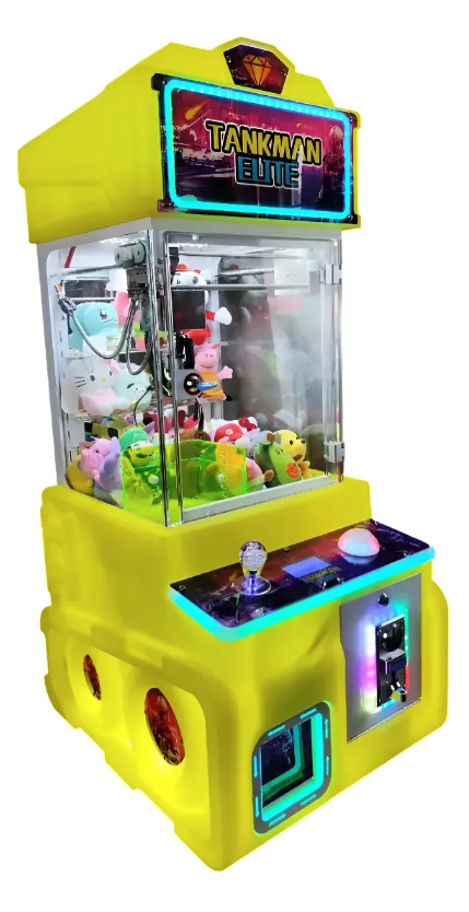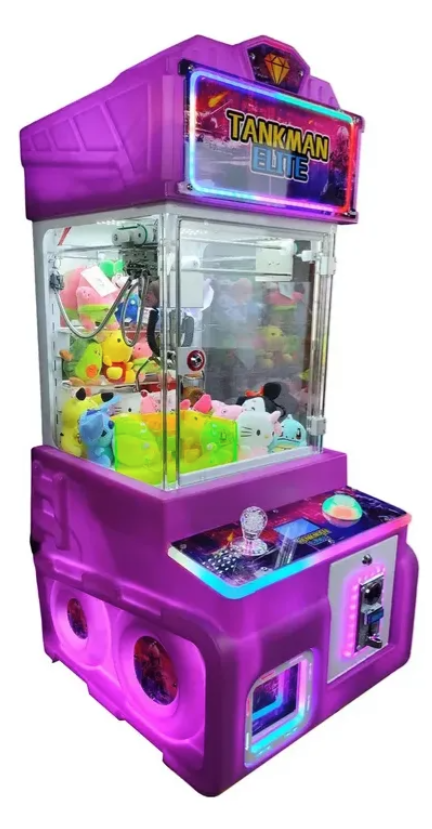 Máquina caza peluches minigarra Tankman Elite RGB, ideal para negocios, arcades, plazas, locales y espacios de entretenimiento. Su diseño compacto y llamativo con iluminación RGB ayuda a atraer la atención de los clientes y la convierte en una excelente opción para generar ingresos con premios y peluches.