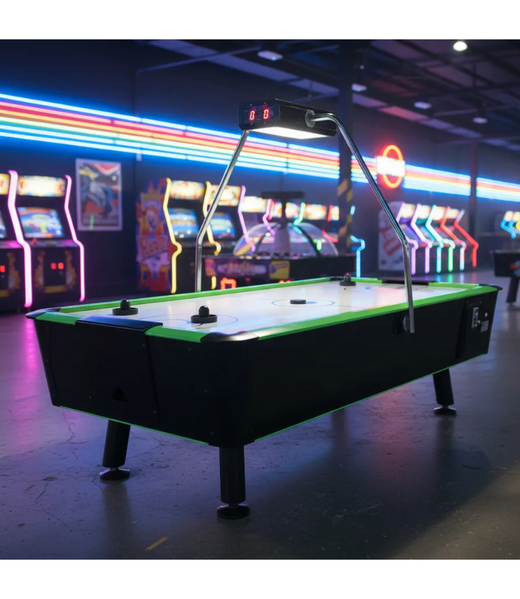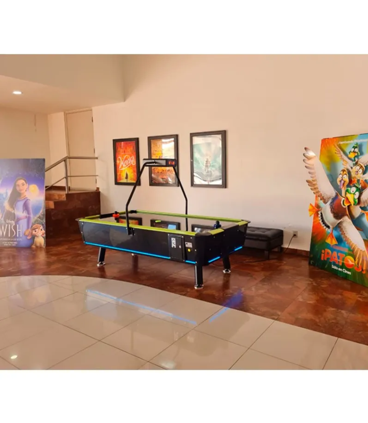 Mesa Air Hockey Junior Versión 2.0, ideal para negocios y espacios de entretenimiento que buscan una opción arcade en formato junior. Cuenta con sistema electrónico con créditos acumulables, monedero electrónico Wei-ya para la moneda que usted elija, arco con luz y contadores digitales, bases de metal con niveladores independientes y porterías metálicas en lámina calibre 16. Medidas: 80 cm de alto x 110 cm de ancho x 220 cm de largo.