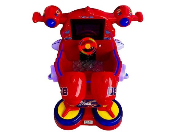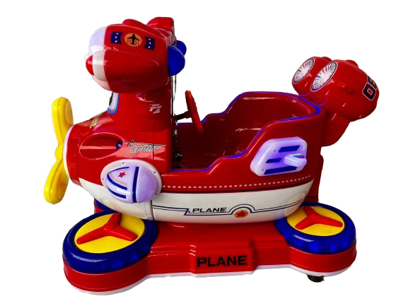 El montable infantil tipo avión es una excelente opción para negocios que buscan atraer familias y ofrecer entretenimiento infantil en plazas, restaurantes, supermercados, salones de fiestas, arcades y centros comerciales. Su diseño rojo llamativo ayuda a captar la atención, mientras que su fabricación con exterior de plástico y estructura interna de metal le da una combinación de buena presentación y mayor resistencia para uso continuo. Además, cuenta con luces LED, pantalla y volante, lo que lo hace más interactivo y atractivo para los niños.
